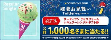 OCN モバイル、サーティワンのギフト券があたるTwitterキャンペーン
