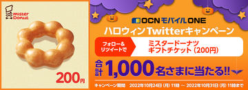 OCN モバイルがハロウィンTwitterキャンペーン、ミスドのチケットが当たる