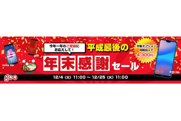 「HUAWEI nova 3」が2万7600円、gooSimsellerのアンコール特価