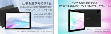 aiwaが新タブレット3モデル、10.1インチで2万7800円から