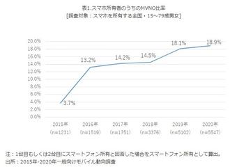 MVNOユーザーの比率は18.9%に、50代と70代は減少で若年層の普及が進む