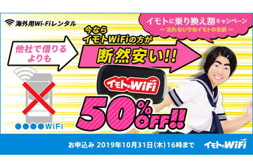 過去2年以内に他社を使っていたら半額、「イモトのWiFi」が乗り換えキャンペーン