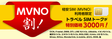 海外旅行者向けの「トラベルSIM」、MVNOユーザー向けの「MVNO割」