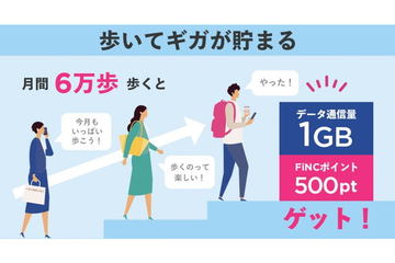 日本通信、目標歩数達成でデータ容量がもらえる「歩いてギガが貯まる」オプションを提供開始