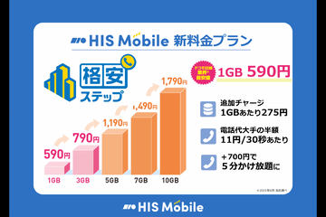 HIS Mobileの新料金プラン「格安ステップ」、音声SIMで1GB590円~