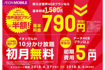 音声プランが8月まで半額、「イオンモバイル」2周年キャンペーンで