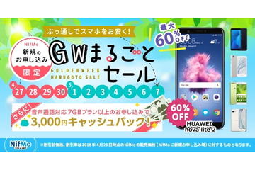 イオンモバイル「大盤振舞キャンペーン」、HUAWEI novaが1万6000円引きなど