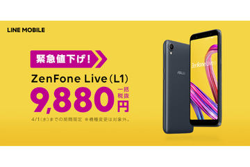 LINEモバイル、「ZenFone Live(L1)」を9880円で販売