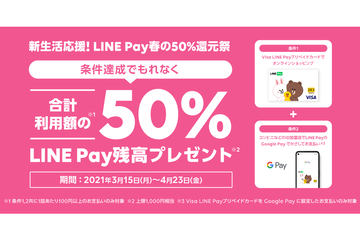 LINE Pay、プリペイドカードでのGoogle Pay/オンライン決済で50%還元