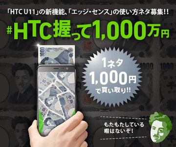 総額1000万円、「HTC U11」を握って操作する「エッジ・センス」のアイデア募集