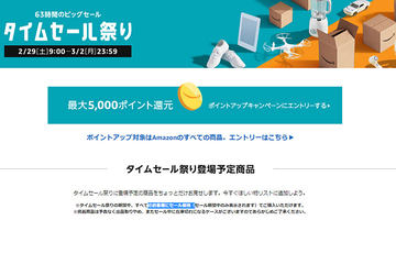 Amazon、2月29日9時から63時間の「タイムセール祭り」