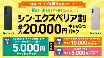au/UQ mobileで「Xperia 1 V/10 V」購入なら最大1万ポイント還元