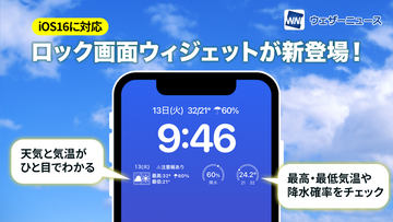 ウェザーニュース、iOS 16対応ロック画面ウィジェットが登場