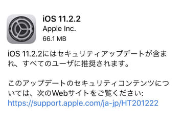 「iOS 11.2.2」が登場、CPU脆弱性「Spectre」へ対処