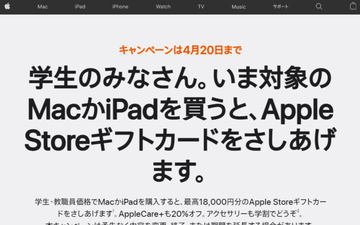 アップル、学生向けのMac/iPad購入キャンペーンは本日20日まで