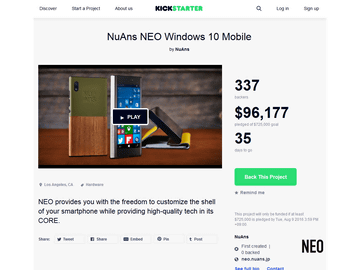 「NuAns NEO」海外展開でKickstarterにて資金調達開始