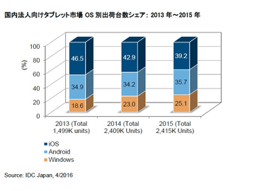 法人の国内タブレット市場、先行したiOSをWindowsが切り崩し始める