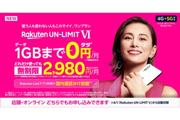 楽天モバイル新プラン、本日提供開始――1年無料キャンペーンの受付は7日まで