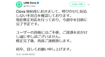 LINEのスマートスピーカー「Clova WAVE」、呼びかけに反応しない不具合【更新】