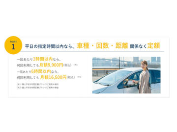 オリックスカーシェアで「個人平日定額プラン」、スマホで予約・月額9900円から
