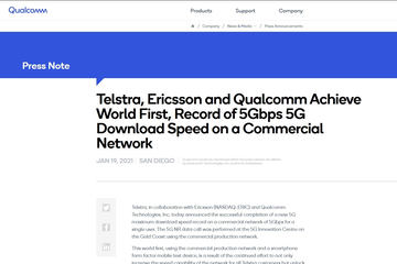 テルストラとクアルコム、エリクソンが商用ネットワークで世界初のDL速度5Gpbsを達成