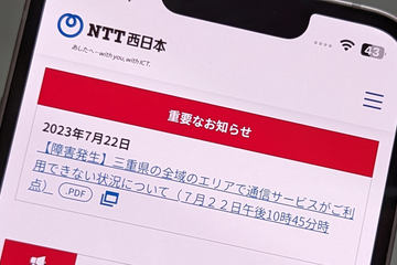 NTT西日本、三重県全域でフレッツやひかり電話など通信障害 22日夜【復旧】