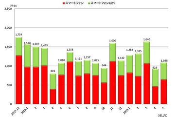 5月の国内メーカースマホ出荷は64万台、新プランを前に様子見傾向