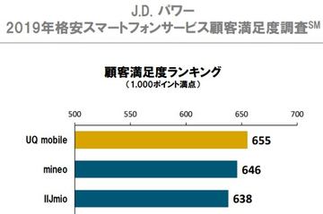 2019年の格安スマホ満足度は「UQ mobile」が1位、J.D.パワー調査