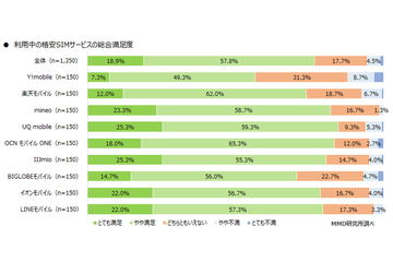 格安SIMの総合満足度トップはUQ mobile、MMD研究所調査