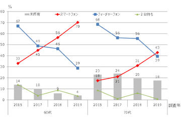 70代のスマホ所有率、ガラケー超え――モバイル社会研究所調査