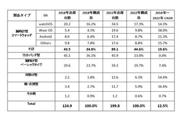 ウェアラブルデバイスの約半数が2022年までにスマートウォッチに、IDC予測
