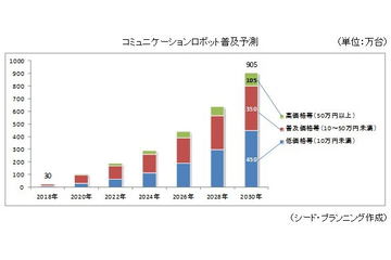 2030年には国内の受付ロボットなどが900万台に、シード・プランニングが調査