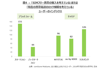 SIMフリー端末の購入意向、ソフトバンクユーザーが最多~コムスコア調査