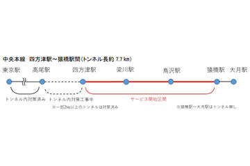 JR東日本の中央本線、四方津駅~猿橋駅のトンネルが携帯電話のサービスエリアに