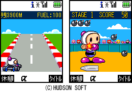 ハドソンは、iアプリ向けゲーム総合サイト「着信☆アプリ♪」に、レースゲーム「ボンバーマンカート」とバッティングゲーム「ボンバーマンベースボール」を追加した。利用料は月額300円で、公式メニューの「ゲーム」→「ゲーム1」→「ミニゲーム」からアクセスできる。