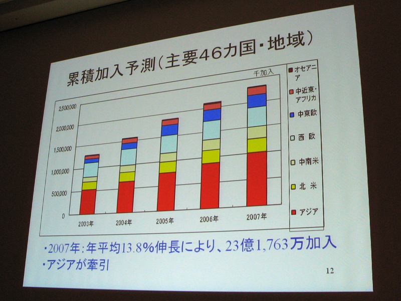 世界46カ国の累計加入数。アジア市場の発展が見込まれる