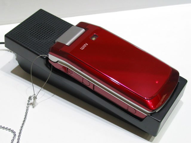 auのW41Kはウーファー付き充電台とともに展示