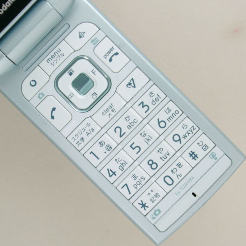 ボタン配置。終話発話ボタンがクリアボタンと同じならびにないボーダフォン端末に多いタイプ。東芝のボーダフォン3Gとも異なる