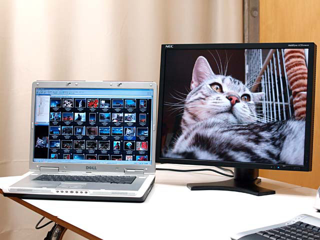 Inspiron 9300と組み合わせてデュアルディスプレイ画像処理環境、みたいな。ファイルの処理はノートPC側の液晶で、レタッチや拡大表示はLCD2190UXiで、とするとより正しい色で画像を処理していける