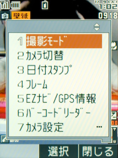 カメラのサブメニュー。縦長画面では、メニューも縦表示
