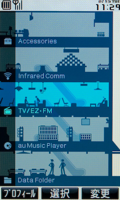 メインメニューのデザインバリエーションの1つ。グラフィカルなリスト式