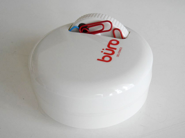 円盤を指先で回すだけで、内部に収納したクリップが磁石の力で引き出されてくる