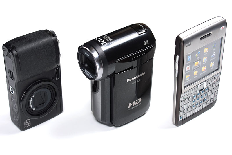 身近にあった携帯可能ハードウェア各種と比べてみた。SD7の外形寸法は幅52×高さ110×奥行87mmで、携帯電話2台分チョイ、コンパクトデジカメなら2台分弱というボリュームだろうか