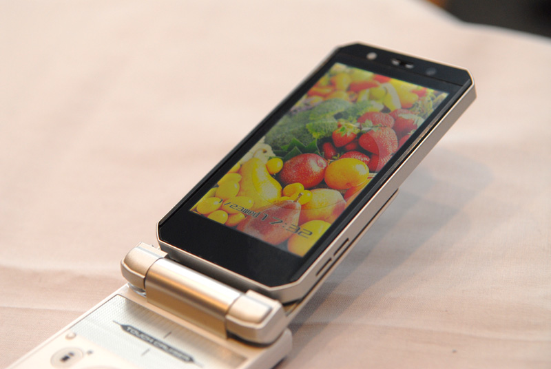 液晶パネルの違いが分かる試作機。中央部のみリフレクトバリアパネルで、周辺は従来のパネルとなっている