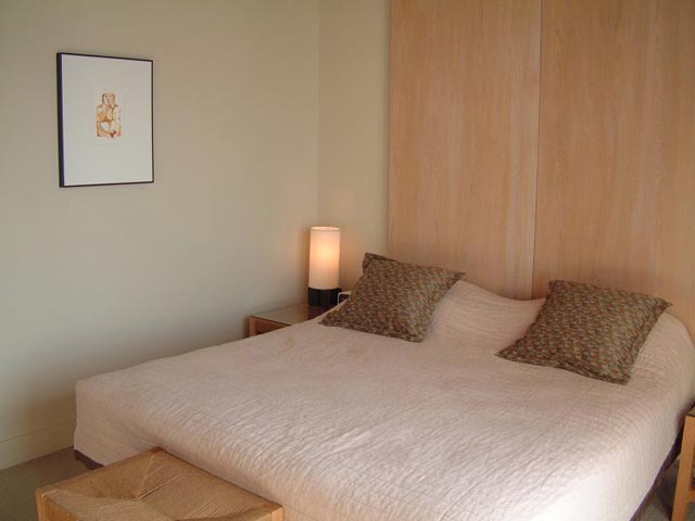 ダブルのキングサイズベッド周りも豊富にウッドが使われている