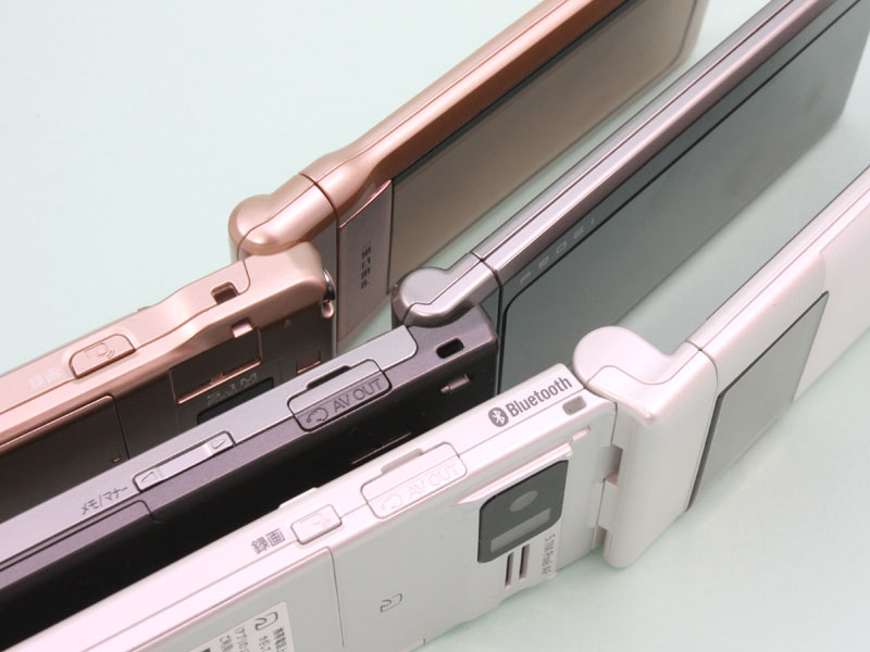 右側面のヒンジ部分を見ると、ヒンジの構造が変わったことがよくわかる。P-01A(下)はディスプレイ部がL字型になっている