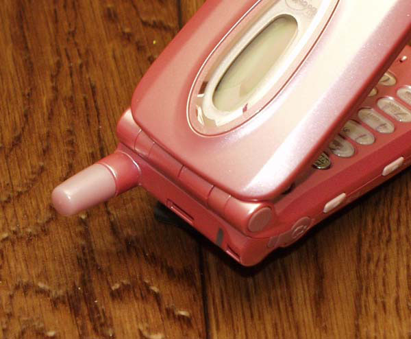 アンテナは蝶つがいの近くに移動し、バッテリー装着部側に格納される構造に変更された。ストラップの穴も移動している。