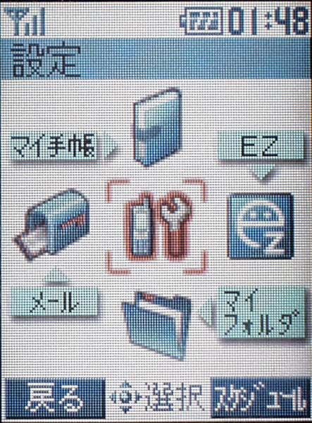 C3001Hのフロントメニュー。合計5つのアイコンの周りにはタイトルが表示されるので、機能アイコンの意味を理解しやすい。