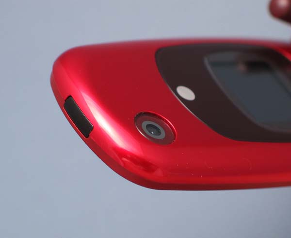 「アウトカメラ」もトップ側に移動。先端に見えるのは赤外線通信ポート。フォトライトはサブディスプレイ側に装備