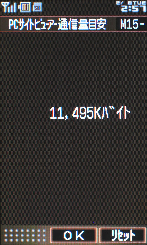 W21CAには「PCサイトビューアー通信量目安」というメニューが用意されている。KBではなく、パケット数で表記して欲しいと考えたのは筆者だけだろうか